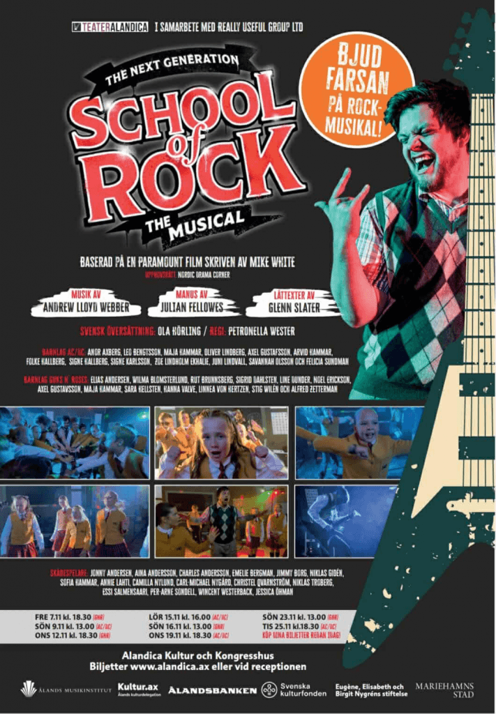 ”School Of Rock” är en musikal komponerad av världens mest kända kompositör i musikalgenren; Sir Andrew Lloyd Webber (Fantomen på Operan, Evita, Cats, Jesus Christ Superstar m.fl.) För manus står den eminenta Down Town Abbey författaren Julian Fellows.